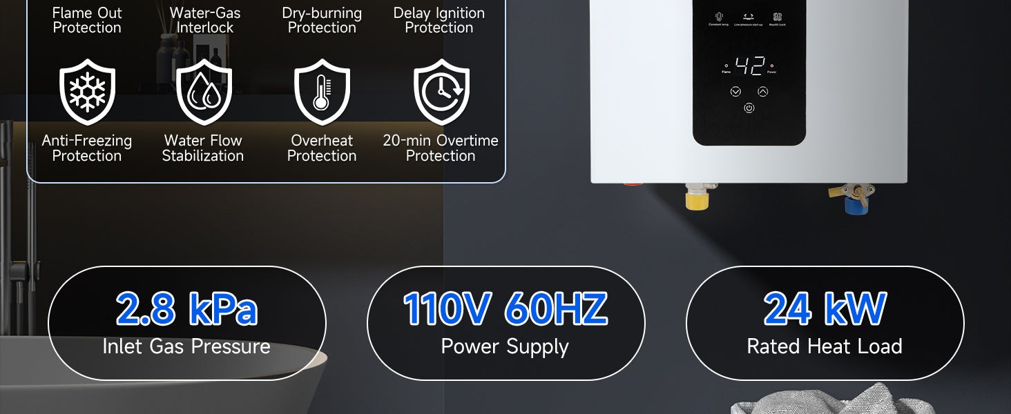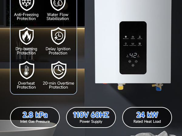 - 【Efficient & Energy-Saving】– With a high-performance output of 68,000 BTU per hour, this 4.21 GPM instant propane water heater provides on-demand hot water for 2–3 points of use simultaneously, making it ideal for bathrooms and kitchens. The advanced combustion technology minimizes gas consumption and reduces operational noise for a more efficient and quieter experience.
