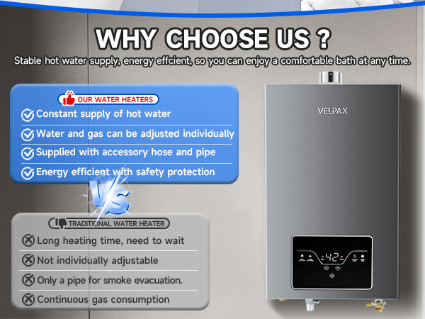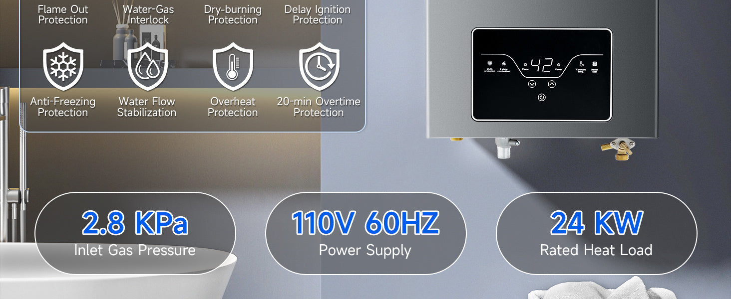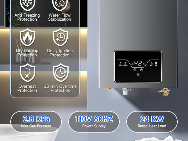 - 【Efficient & Energy-Saving】– With a high-performance output of 68,000 BTU per hour, this 4.21 GPM instant propane water heater provides on-demand hot water for 2–3 points of use simultaneously, making it ideal for bathrooms and kitchens. The advanced combustion technology minimizes gas consumption and reduces operational noise for a more efficient and quieter experience.
