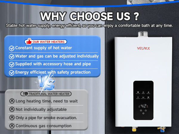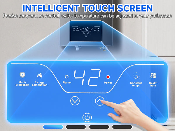 - 【Premium Quality & Durability】– Crafted with a stainless steel body for superior temperature and corrosion resistance, this propane water heater is built to last. The oxygen-free copper water tank ensures minimal heat loss and an extended service life. The LED smart digital display allows for easy temperature adjustments between 35°C(95°F) and 65°C(149°F), giving you precise control over your hot water needs.